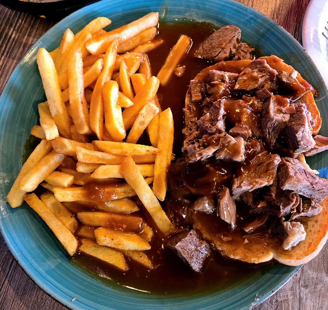 Benny’s oven-roasted beef served as an open-face sandwich with fries smothered in gravy.