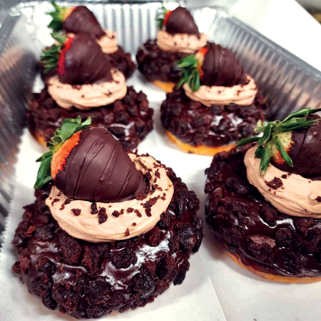 Valentine’s donuts and our chocolate covered strawberries are always a huge hit,” Fawn says. Specials include playful takes on Little Debbie Valentine cakes and a Triple Chocolate Covered Strawberry donut crowned with brownie and chocolate mousse. After Valentine’s Day, they roll right into Girl Scout Cookie donuts. Think Tagalongs, Samoas, and Thin Mints.